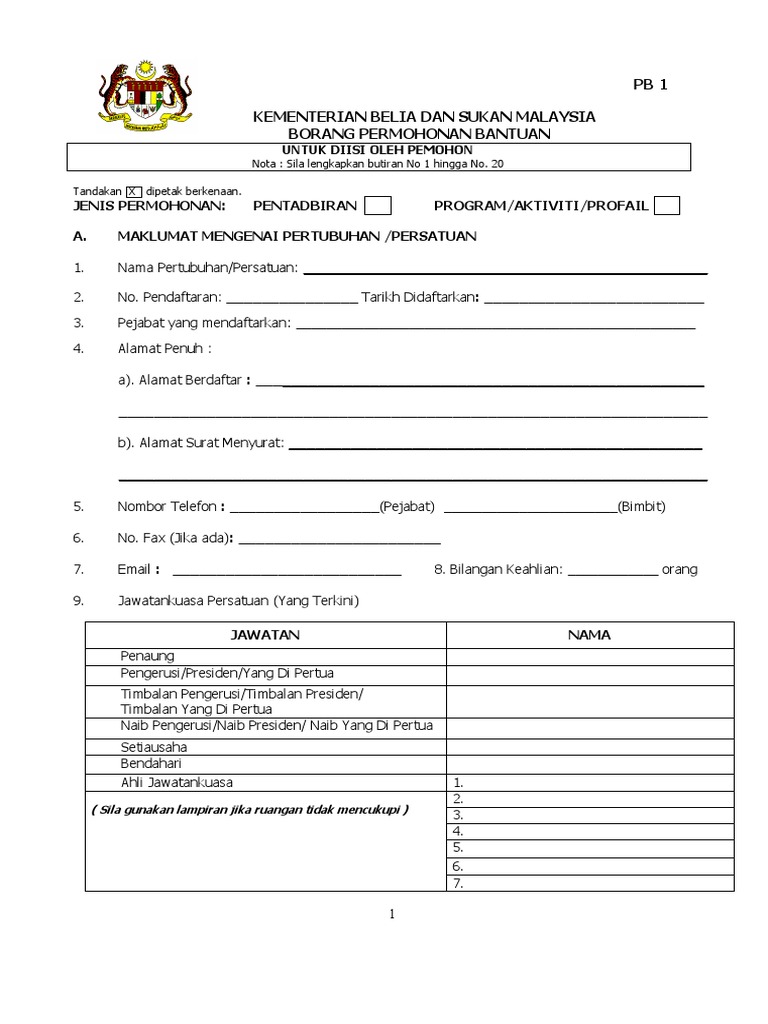 Borang Pb1 Borang Permohonan Bantuan Persekolahan Pdf